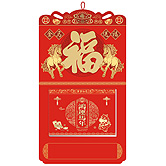 • 特度對(duì)開(kāi)中國(guó)紅金雕窗花掛歷